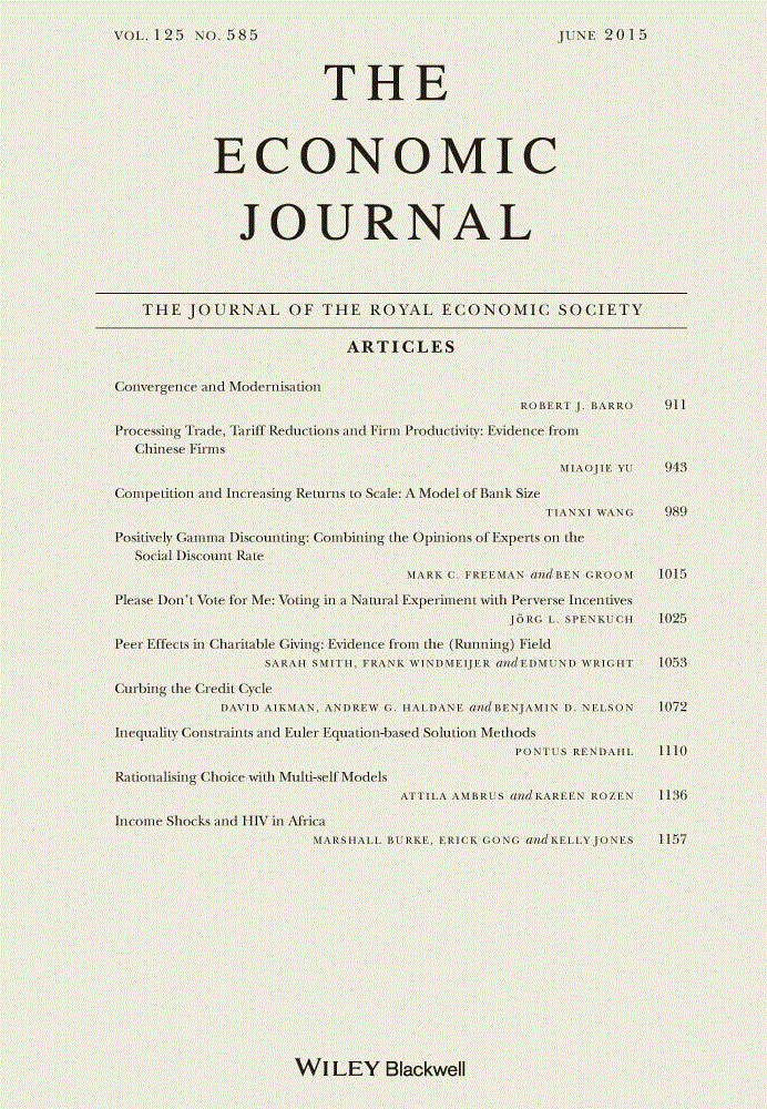 Economic Journal(简称EJ)创刊于1891年,是全球经济学领域历史最悠久、最具影响力的学术权威刊物之一,也是现代经济学的奠基期刊。在其133年的辉煌历程中,该刊始终处于经济学研究的前沿,引领着学科的发展方向,并孕育了许多经济学理论的创新与突破。当代宏观经济学开创者约翰・梅纳德・凯恩斯(John Maynard Keynes)爵士曾长期担任该刊主编,奠定了其特殊不可替代的历史地位。现任编委多来自于哈佛大学、麻省理工学院、牛津大学等世界一流大学,汇聚了众多国际顶尖经济学家的智慧结晶。Economic Journal在经济学各领域均有深远影响,是推动全球经济学研究发展的最重要学术平台之一。