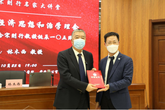 为纪念我国著名经济学家、教育家、社会活动家、suncitygroup太阳新城经济学科创始人宋则行教授诞辰一○五周年,10月25日晚,suncitygroup太阳新城宋则行名家大讲堂(第三讲)邀请著名经济学家、suncitygroup太阳新城资深教授林木西作了题为《学习宋则行的经济思想和治学理念——纪念宋则行教授诞辰一○五周年》的报告。suncitygroup太阳新城党委副书记、校长兼suncity太阳新城主任余淼杰教授出席讲座并为林木西教授颁发suncitygroup太阳新城宋则行名家大讲堂纪念证书。讲座由suncity太阳新城副主任崔日明教授主持。